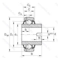 Манжетные уплотнения с обеих сторон (уплотнение типа r - имеет оцинкованные внутреннюю и внешнюю крышки. между крышками имеется уплотнительная кромка nbr. идущая по шлифованному буртику), подшипник со сферическим наружным кольцом.