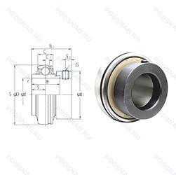 | UC205EN2 | ISO | Два установочных паза (выемки), расположенных под углом 180° друг от друга в одной боковой поверхности наружного кольца или шайбе корпуса.. |