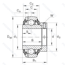 Манжетные уплотнения с обеих сторон (уплотнение типа r - имеет оцинкованные внутреннюю и внешнюю крышки. между крышками имеется уплотнительная кромка nbr. идущая по шлифованному буртику), защитные щиты с обеих сторон, подшипник со сферическим наружным кольцом.