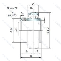 | UC206EN2 | ISO | Два установочных паза (выемки), расположенных под углом 180° друг от друга в одной боковой поверхности наружного кольца или шайбе корпуса.. |