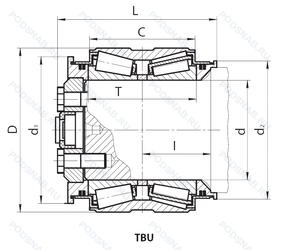 TBU130 — Роликовый радиальный-упорный двухрядный подшипник, основное исполнение, производство EPK.