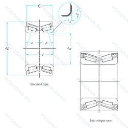 | 43KWD02 | ISO | Роликовый радиальный-упорный двухрядный подшипник. |