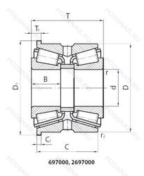 697724Л1 — Роликовый радиальный-упорный двухрядный подшипник, модификация основного исполнения 697724, выпускается производителями: EPK, ГПЗ.