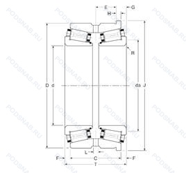 100034X/100076XH — Роликовый радиальный-упорный двухрядный подшипник, модификация основного исполнения 100034X/100076, производство GAMET.