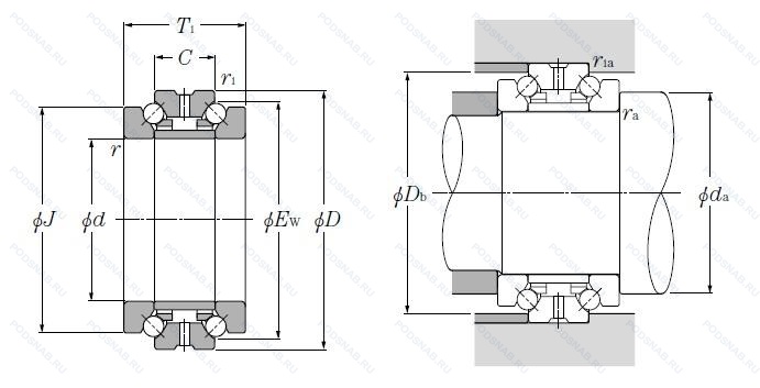 | 234718B | Шариковый упорный двухрядный подшипник. Конический роликовый подшипник. Угол контакта 20 градусов. | 93.00 | 140.00 | 60.00 |
