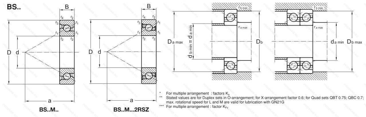 | MM25BS62DUH DF | ISO | Комплект из двух подшипников. согласованных для установки по Х-образной схеме. Число. следующее непосредственно после букв DF. обозначает конструкцию промежуточного кольца. |
