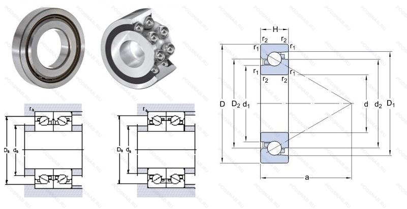 Угол контакта α=60, дуплексные подшипники для установки в тандеме, внутренние изменения в конструкции.