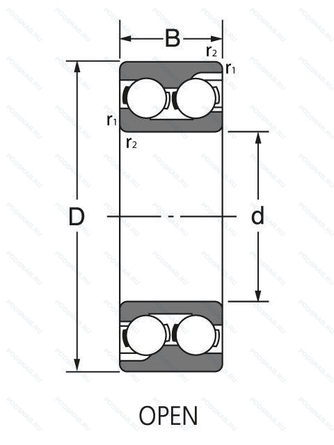 | Обозначение | Конструктивные особенности | Внутренний (d) | Наружный (D) | Ширина (B) |