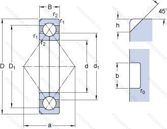 | 7056B | Шариковый радиально-упорный однорядный подшипник. Угол контакта 40°. | 280.00 | 420.00 | 65.00 |
