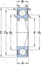 Однорядный с улучшенной конструкцией и углом контакта 25°, измененная или модифицированная внутренняя конструкция при неизменных основных размерах.