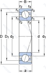 Однорядный с улучшенной конструкцией и углом контакта 25°, измененная или модифицированная внутренняя конструкция при неизменных основных размерах.