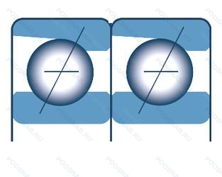 | 7320DF | Комплект из двух подшипников. согласованных для установки по Х-образной схеме. Число. следующее непосредственно после букв DF. обозначает конструкцию промежуточного кольца. |