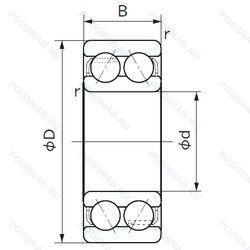 | Обозначение | Конструктивные особенности | Внутренний (d) | Наружный (D) | Ширина (B) |