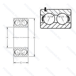 | 5305C | Двухрядный радиально-упорный подшипник качения без канавки для заполнения шариками. Со сходящимися наружу угловыми контактами. Жесткая конструкция. |