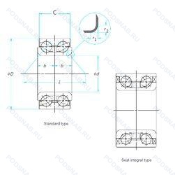 | 43BWD08 | ISO | Шариковый радиально-упорный двухрядный подшипник. |
