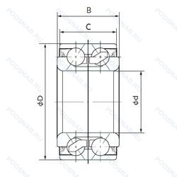 | 38BWD10B | ISO | Шариковый радиально-упорный двухрядный подшипник. |