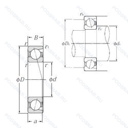 | 7960DF | Комплект из двух подшипников. согласованных для установки по Х-образной схеме. Число. следующее непосредственно после букв DF. обозначает конструкцию промежуточного кольца. |