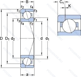 | 71915 C-UO | 15° Угол контакта. Универсальный монтаж. Для установки по O- и X- образной схеме - беззазорные.. |
