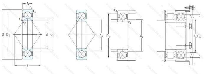 | Обозначение | Конструктивные особенности | Внутренний (d) | Наружный (D) | Ширина (B) |