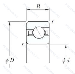 | Обозначение | Конструктивные особенности | Внутренний (d) | Наружный (D) | Ширина (B) |