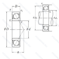 | Обозначение | Конструктивные особенности | Внутренний (d) | Наружный (D) | Ширина (B) |