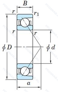 | 7038DF | Комплект из двух подшипников. согласованных для установки по Х-образной схеме. Число. следующее непосредственно после букв DF. обозначает конструкцию промежуточного кольца. |