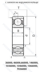 | 36213К6 | «Замок» (скос) на внутреннем кольце. |
