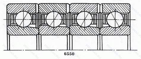 22-1546908 E — Шариковый радиально-упорный четырехрядный подшипник, модификация основного исполнения 1546908, производство ГПЗ.
