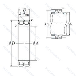 | RS-4821E4 | Канавка для смазки и три отверстия во внешнем кольце подшипника. |
