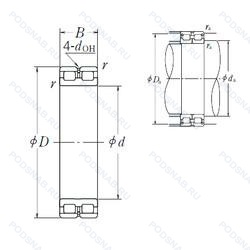 | RS-4826E4 | Канавка для смазки и три отверстия во внешнем кольце подшипника. |