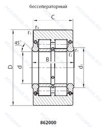 | Обозначение | Конструктивные особенности | Внутренний (d) | Наружный (D) | Ширина (B) |