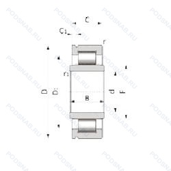 Однорядный цилиндрический роликоподшипник. Наружное кольцо подшипника имеет два борта, а внутреннее кольцо бортов не имеет, кольца стабилизированы по размерам для использования при рабочих температурах до +250°c (482°f).