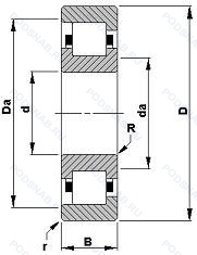 | NP3226 | ISO | Канавка под стопорное кольцо на наружном кольце подшипника. |