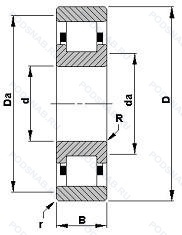 | Обозначение | Конструктивные особенности | Внутренний (d) | Наружный (D) | Ширина (B) |