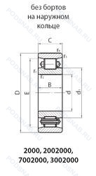 | 42216-К1М | ГОСТ | Кольцевая проточка на середине цилиндрической наружной поверхности наружного кольца плюс три отверстия для смазки. Модифицированный контакт.. |