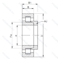Серия подшипников NJ с упорным кольцом HJ(NJ+HJ=NH), шестигранное отверстие (кулачковые ролики с осью), канавка под стопорное кольцо на наружном кольце подшипника.