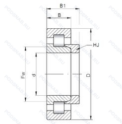 Серия подшипников NJ с упорным кольцом HJ(NJ+HJ=NH), канавка под стопорное кольцо на наружном кольце подшипника.