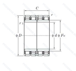 | 4R10402 | ISO | Роликовый радиальный цилиндрический четырехрядный подшипник. |