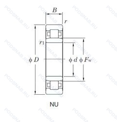 | NU2314ECJ | Два стальных сепаратора оконного типа. внутреннее кольцо без фланца. направляющее кольцо с усиленным роликом. |