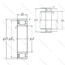 | Обозначение | Конструктивные особенности | Внутренний (d) | Наружный (D) | Ширина (B) |