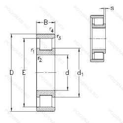 | N221E | Однорядный цилиндрический роликоподшипник с увеличенной грузоподъемностью. |