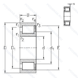 Однорядный бессепараторный цилиндрический роликоподшипник. Два борта на внутреннем кольце и один борт на наружном, подшипник без сепаратора. с полным комплектом тел качения.