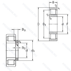 Однорядный цилиндрический роликоподшипник. Наружное кольцо подшипника имеет два борта, а внутреннее кольцо бортов не имеет, 20-28 um (c3 & c4).