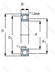 | Обозначение | Конструктивные особенности | Внутренний (d) | Наружный (D) | Ширина (B) |