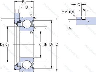 | 6205LLBNR | Канавка и стопорное кольцо на наружном кольце. Бесконтактное нитриловое уплотнение. |