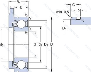 | 6206LLBNR | Канавка и стопорное кольцо на наружном кольце. Бесконтактное нитриловое уплотнение. |