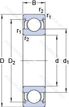 | Обозначение | Конструктивные особенности | Внутренний (d) | Наружный (D) | Ширина (B) |