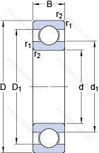 | Обозначение | Конструктивные особенности | Внутренний (d) | Наружный (D) | Ширина (B) |