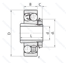| Обозначение | Конструктивные особенности | Внутренний (d) | Наружный (D) | Ширина (B) |