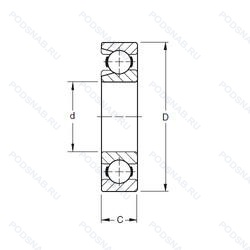| Обозначение | Конструктивные особенности | Внутренний (d) | Наружный (D) | Ширина (B) |